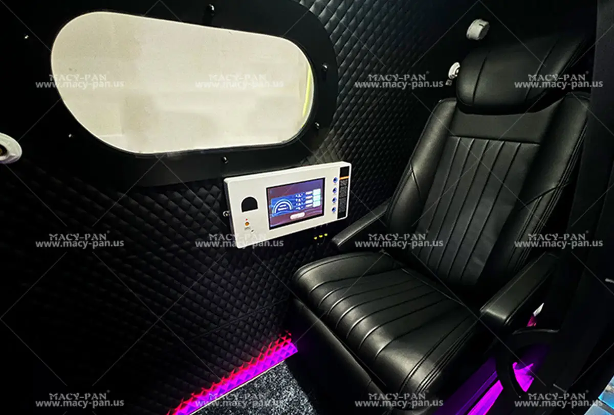 The Macy-Pan HE5000mono multiplace hyperbaric oxygen chamber is an advanced, professionally designed pressurized enclosure crafted for delivering hyperbaric oxygen therapy (HBOT). This multiplace chamber features versatile configurations that accommodate 1-2 individuals, such as a bed-to-bench convertible, one or two car seats, a lounge chair with a bench, or two seats paired with a bench.It also allows you to share the healing experience with friends, family, or other users.
